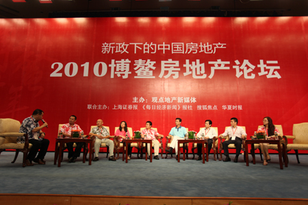 2010年8月11日-14日,2010博鰲房地產(chǎn)論壇在海南博鰲開幕。論壇邀請(qǐng)了樊綱、周其仁、陳淮、巴曙松、陳啟宗、任志強(qiáng)、劉曉光、施永青、凌克等學(xué)者和企業(yè)精英參會(huì),共議“新政下的中國(guó)房地產(chǎn)”。
