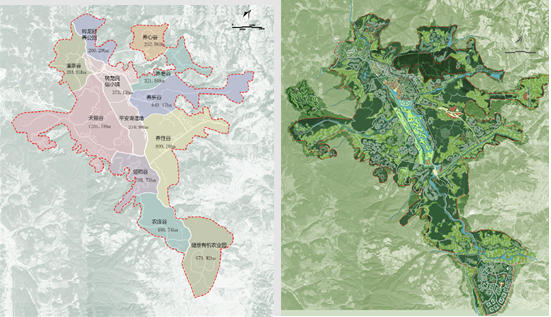 依據(jù)資源特色與場地特征,在空間上形成了“一心、兩園、八谷”的產(chǎn)業(yè)布局,從而推動區(qū)域城鄉(xiāng)一體化建設。