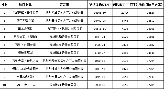 杭州區(qū)域房地產(chǎn)項(xiàng)目一周銷售數(shù)據(jù)(2015年8月24日-8月30日)