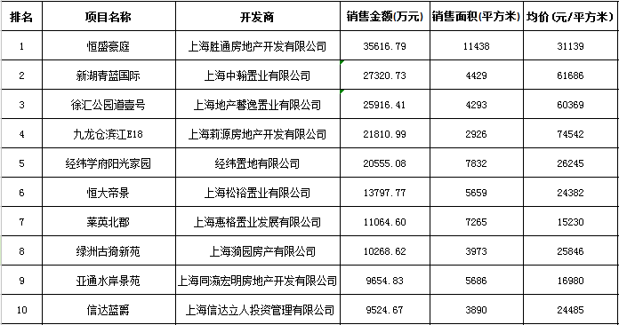 成交量最大的項(xiàng)目是位于寶山淞南高境板塊的恒盛豪庭,共成交86套,成交金額為3.13億元。