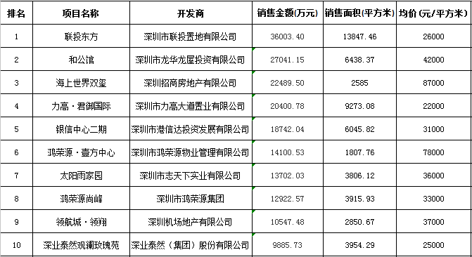 深圳區(qū)域房地產(chǎn)項(xiàng)目一周銷(xiāo)售數(shù)據(jù)(2015年10月5日—10月11日)