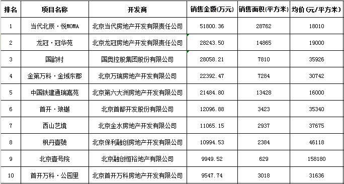 北京區(qū)域房地產(chǎn)項目一周銷售數(shù)據(jù)(2015年10月19日-10月25日)