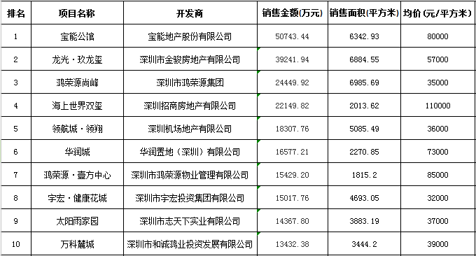 深圳區(qū)域房地產(chǎn)項目一周銷售數(shù)據(jù)(2015年11月2日-11月8日)