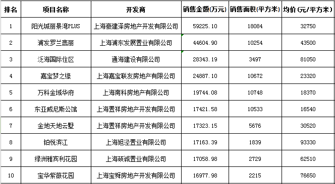 上海區(qū)域房地產項目一周銷售數(shù)據(jù)(2015年12月7日-12月13日)