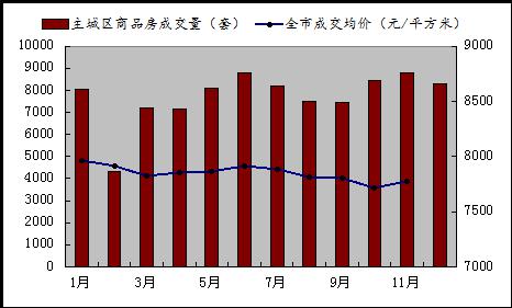 2015年全年,成都市主城區(qū)商品房成交套數(shù)約9.3萬(wàn)套,比2014年上浮4.07%,全年均價(jià)基本維持在7800元/平方米左右。