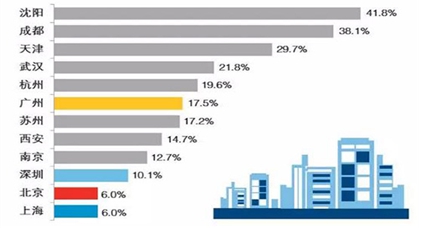 2015年第三季度全國(guó)重點(diǎn)城市寫字樓空置率排名