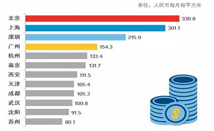 2015年第三季度全國(guó)重點(diǎn)城市寫字樓平均租金排名
