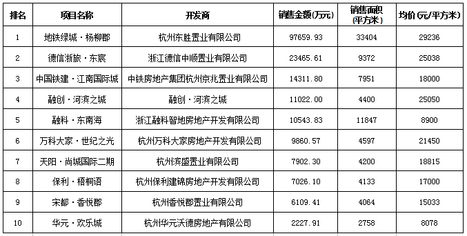 杭州區(qū)域房地產(chǎn)項(xiàng)目一周銷售數(shù)據(jù)(2016年2月29日-3月6日)