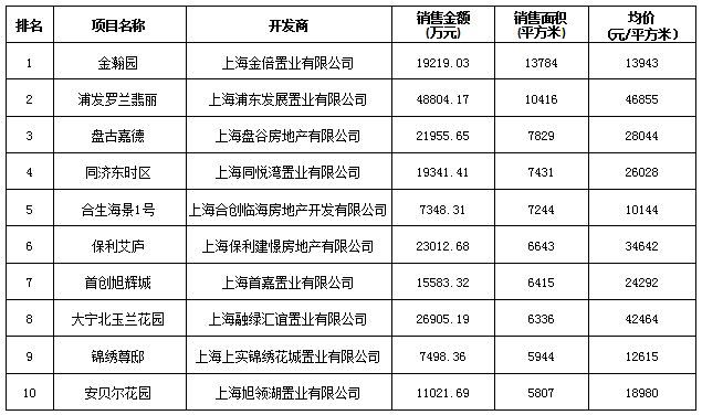 上海區(qū)域房地產(chǎn)項(xiàng)目一周銷售數(shù)據(jù)(2016年3月7日-3月13日)
