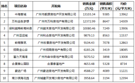 廣州區(qū)域房地產項目一周銷售數(shù)據(2015年3月7日-3月13日)