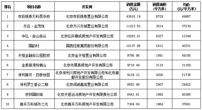 北京區(qū)域房地產(chǎn)項目一周銷售數(shù)據(jù)(2016年3月21日-3月27日)
