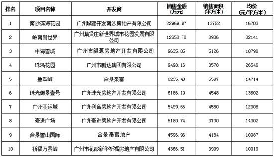 廣州區(qū)域房地產(chǎn)項(xiàng)目一周銷售數(shù)據(jù)(2015年4月4日-4月10日)
