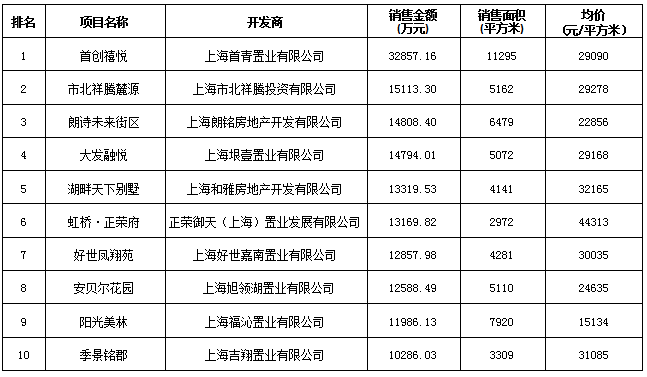 上海區(qū)域房地產(chǎn)項目一周銷售數(shù)據(jù)(2016年4月11日-4月17日)