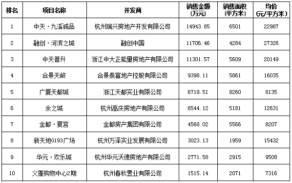 杭州區(qū)域房地產(chǎn)項(xiàng)目一周銷售數(shù)據(jù)(2016年4月11日-4月17日)