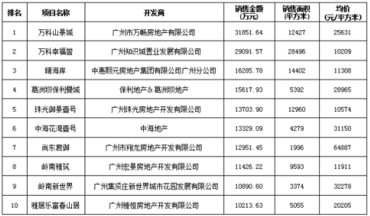 廣州區(qū)域房地產(chǎn)項目一周銷售數(shù)據(jù)(2016年4月25日-5月1日)