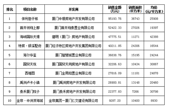 廈門區(qū)域房地產(chǎn)項目一周銷售數(shù)據(jù)(2016年4月25日-5月1日)