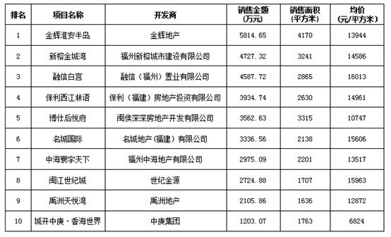 福州區(qū)域房地產(chǎn)項(xiàng)目一周銷售數(shù)據(jù)(2016年5月9日-5月15日)