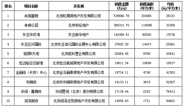 北京區(qū)域房地產(chǎn)項目一周銷售數(shù)據(jù)(2016年6月6日-6月12日)