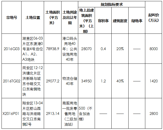 6月16日,廈門市國(guó)土局發(fā)布兩個(gè)出讓公告,掛牌出讓位于湖里區(qū)、翔安區(qū)及同安區(qū)的3宗商服用地,總起拍價(jià)1.22億元,均于7月19日正式出讓。