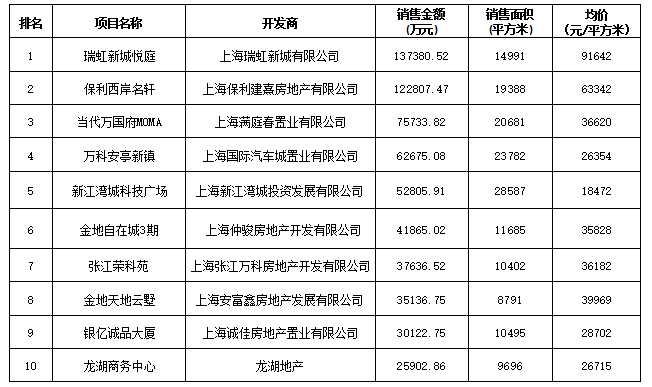 附:上海區(qū)域房地產項目一周銷售數據(2016年6月27日-7月3日)