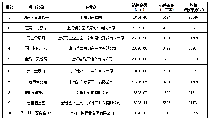 附:上海區(qū)域房地產(chǎn)項(xiàng)目一周銷售數(shù)據(jù)(2016年7月4日-7月10日)