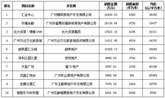 附:廣州區(qū)域房地產(chǎn)項目一周銷售數(shù)據(jù)(2016年7月4日-7月10日)