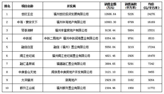 附:福州區(qū)域房地產(chǎn)項目一周銷售數(shù)據(jù)(2016年7月11日-7月17日)
