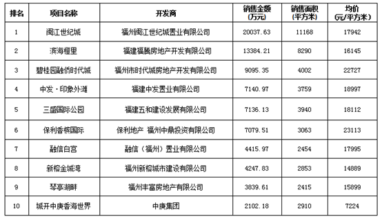附:福州區(qū)域房地產(chǎn)項(xiàng)目一周銷售數(shù)據(jù)(2016年7月18日-7月24日)