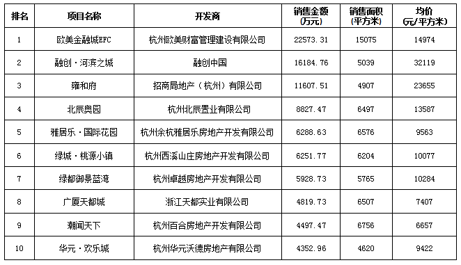 附:杭州區(qū)域房地產(chǎn)項(xiàng)目一周銷售數(shù)據(jù)(2016年8月15日-8月21日)