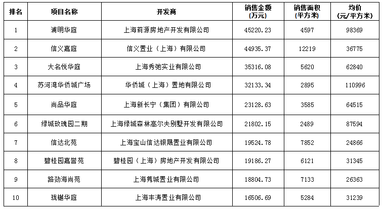 附:上海區(qū)域房地產(chǎn)項(xiàng)目一周銷售數(shù)據(jù)(2016年10月10日-10月16日)