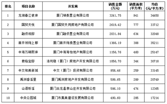 附:廈門區(qū)域房地產(chǎn)項目一周銷售數(shù)據(jù)(2016年10月10日-10月16日)