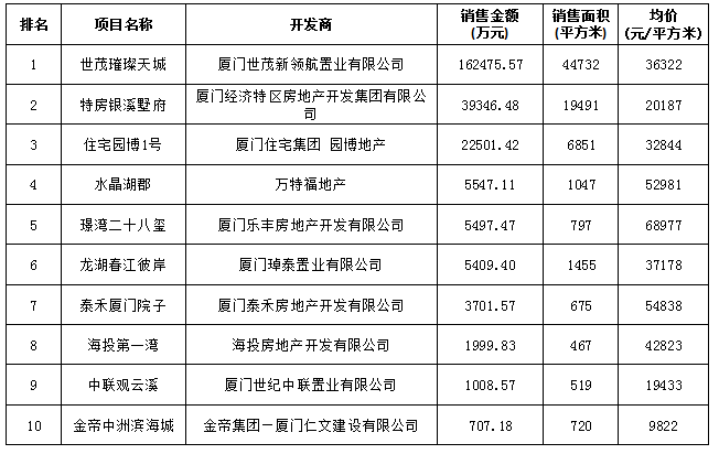 附:廈門區(qū)域房地產(chǎn)項目一周銷售數(shù)據(jù)(2016年10月24日-10月30日)