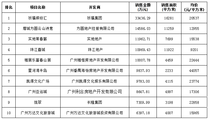 附:廣州區(qū)域房地產(chǎn)項(xiàng)目一周銷售數(shù)據(jù)(2016年10月24日-10月30日)