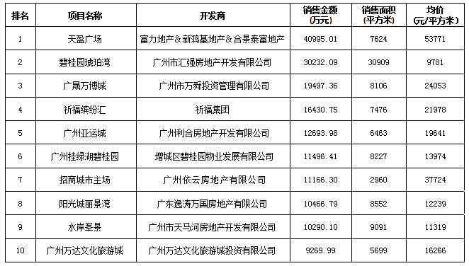 附:廣州區(qū)域房地產(chǎn)項(xiàng)目一周銷售數(shù)據(jù)(2016年1月9日-1月15日)