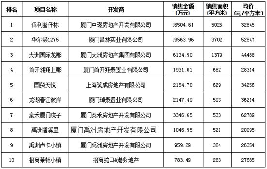 附:廈門區(qū)域房地產(chǎn)項目一周銷售數(shù)據(jù)(2017年2月6日-2月12日)