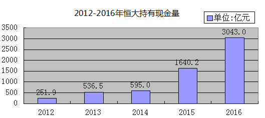 據(jù)恒大披露,截至2016年底,其現(xiàn)金總額為3043億,相比2015年底增加43%,這也是恒大上市以來現(xiàn)金持有量最高水平。