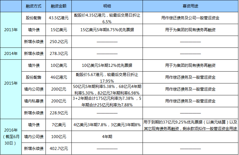 2013年-2016年上半年恒大融資統(tǒng)計(jì)