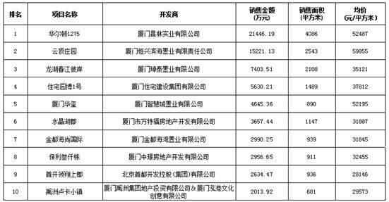附:廈門區(qū)域房地產(chǎn)項目一周銷售數(shù)據(jù)(2017年2月13日-2月19日)
