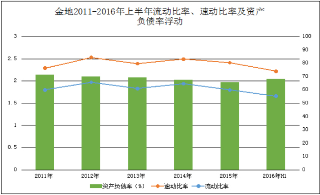 2016年金地中期業(yè)績(jī)報(bào)告其中顯示,金地上半年實(shí)現(xiàn)經(jīng)營(yíng)性現(xiàn)金流凈額70.6億元,持有貨幣資金204.3 億元,公司債務(wù)融資余額為355億元,債務(wù)融資加權(quán)平均成本為4.81%,資產(chǎn)負(fù)債率為68.2%,剔除并不構(gòu)成實(shí)際償債壓力的預(yù)收賬款后,公司實(shí)際資產(chǎn)負(fù)債率為58.2%,凈負(fù)債率為32.6%。