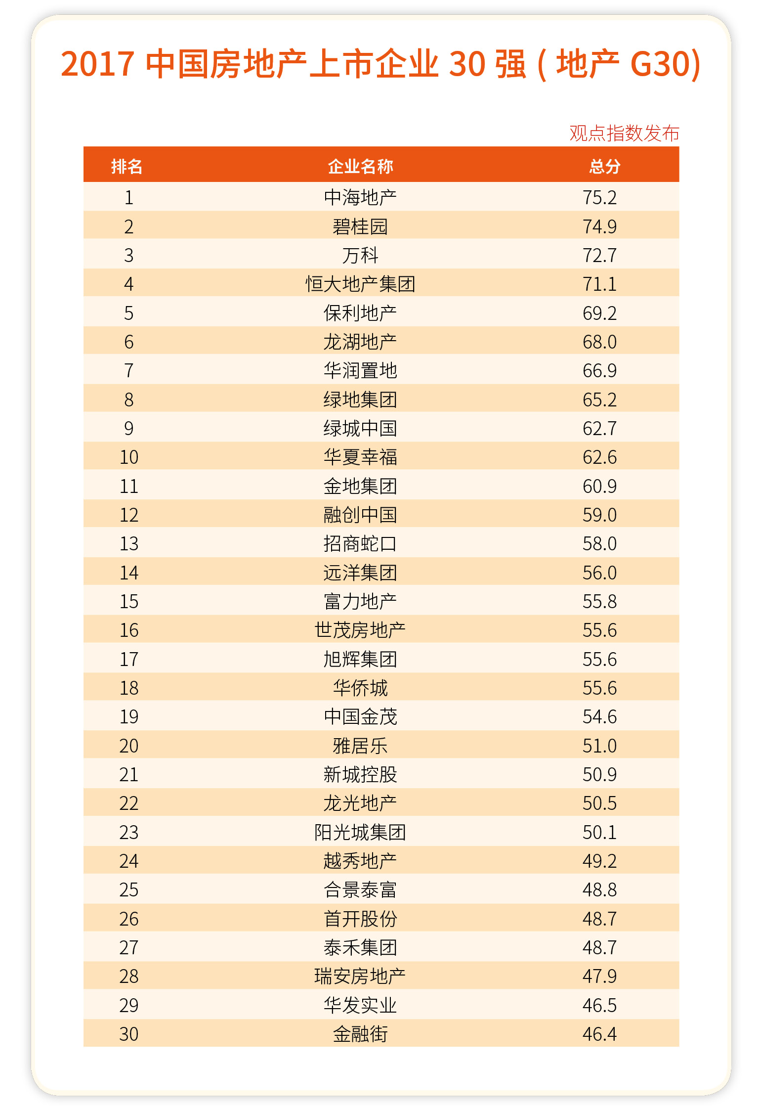 2017中國房地產(chǎn)上市企業(yè)30強(地產(chǎn)G30)
