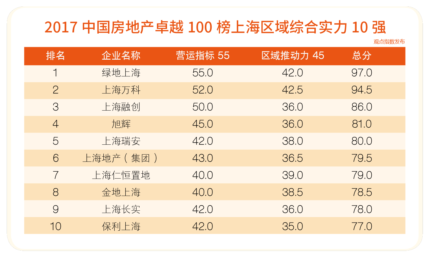 2017中國房地產(chǎn)卓越100榜上海區(qū)域綜合實力10強