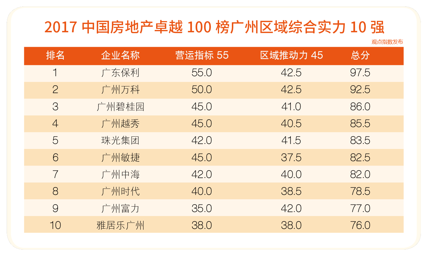 2017中國房地產(chǎn)卓越100榜廣州區(qū)域綜合實力10強