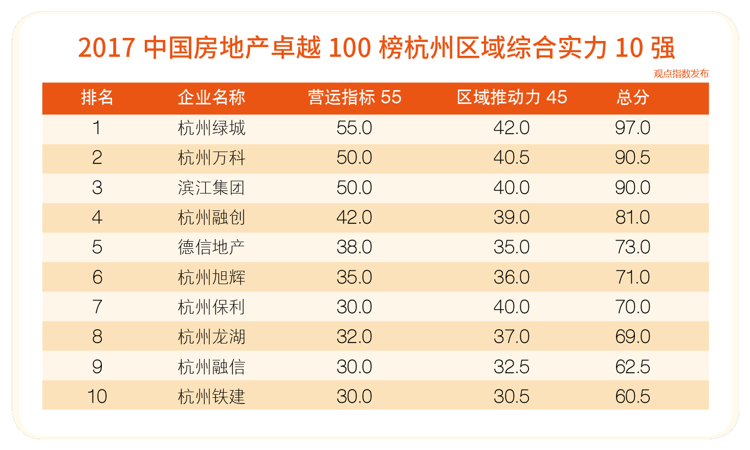 2017中國房地產(chǎn)卓越100榜杭州區(qū)域綜合實力10強