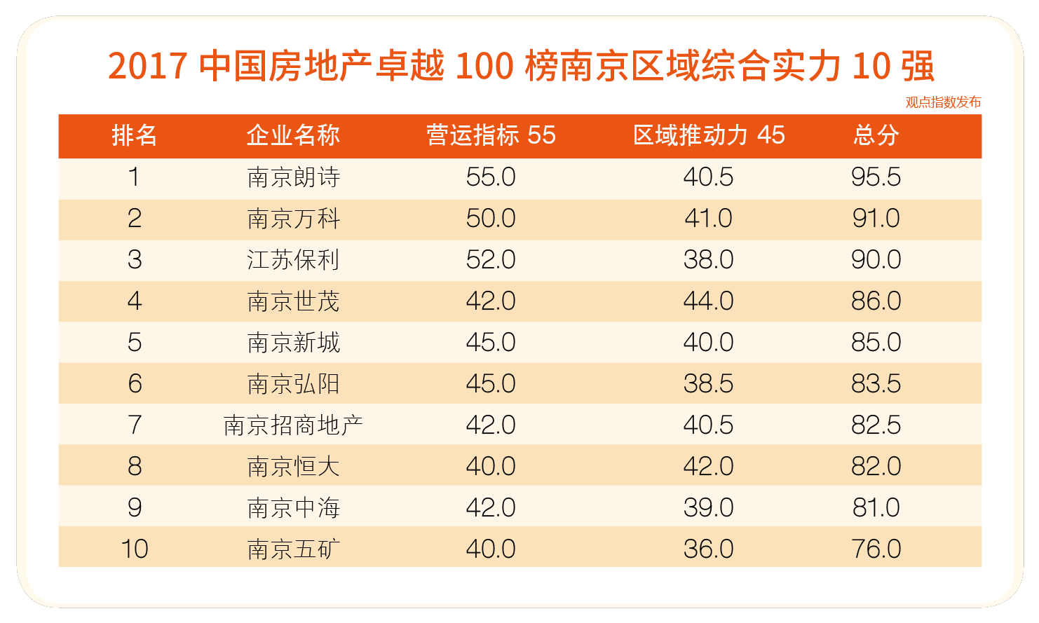 2017中國房地產(chǎn)卓越100榜南京區(qū)域綜合實力10強