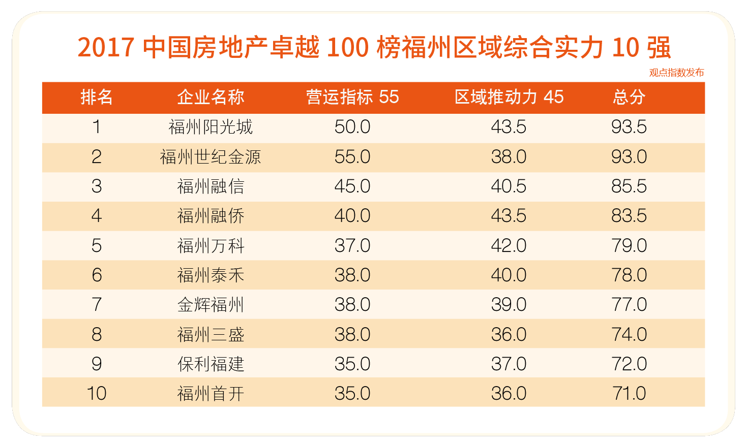 2017中國房地產(chǎn)卓越100榜福州區(qū)域綜合實力10強