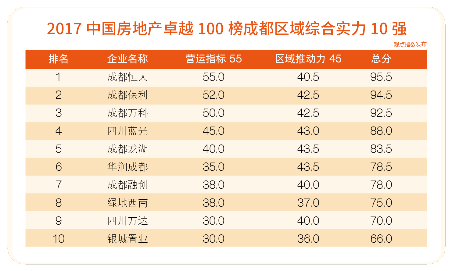 2017中國房地產(chǎn)卓越100榜區(qū)域榜: