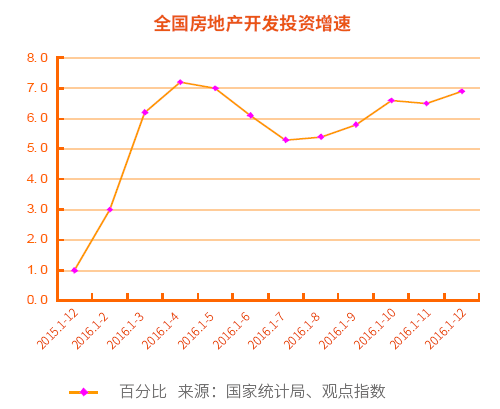 2016年,全國房地產(chǎn)開發(fā)投資102581億元,比上年名義增長6.9%(扣除價格因素實際增長7.5%),增速比1-11月份提高0.4個百分點。