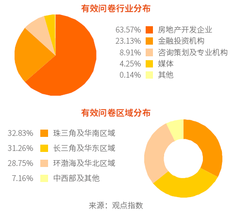 調(diào)查問卷發(fā)放區(qū)域覆蓋全國各地,發(fā)放對象包含開發(fā)企業(yè)、金融投資機構(gòu)、咨詢策劃及專業(yè)機構(gòu)、傳媒等。