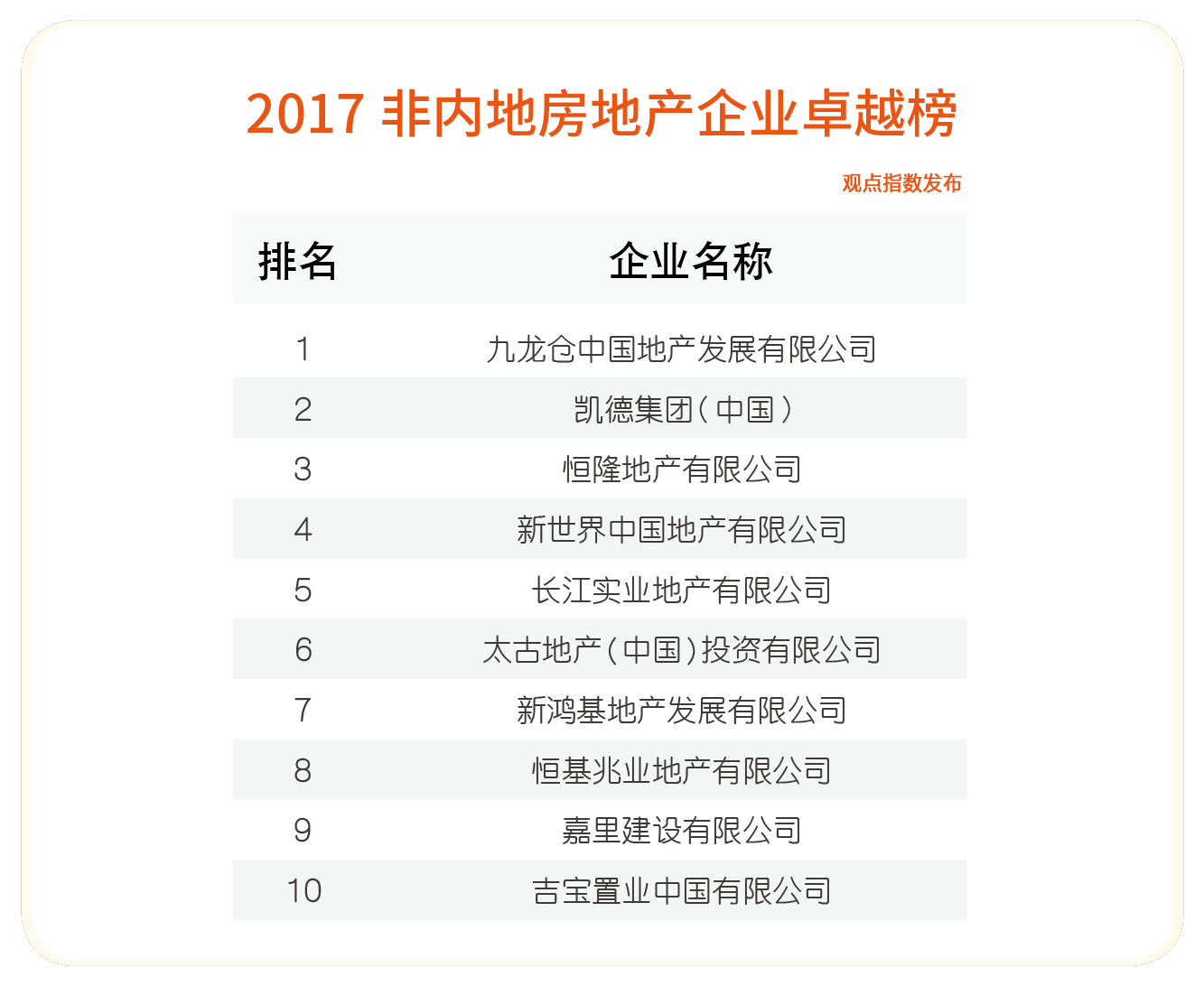 2017非內(nèi)地房地產(chǎn)企業(yè)卓越榜