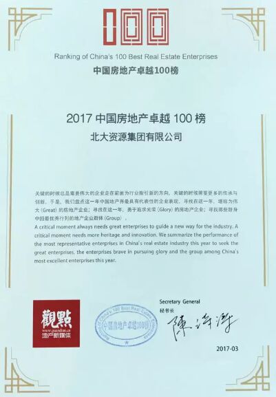 3月22日,由觀點(diǎn)新媒體主辦的“2017中國(guó)房地產(chǎn)卓越100榜發(fā)布盛典”在深圳舉行,評(píng)選和表彰過(guò)去一年中國(guó)地產(chǎn)界杰出與非凡的企業(yè)。憑借在營(yíng)運(yùn)、財(cái)務(wù)、品牌、管理等綜合領(lǐng)域的卓越表現(xiàn),北大資源榮登“2017中國(guó)房地產(chǎn)卓越100榜”,成為行業(yè)典范與榜樣。